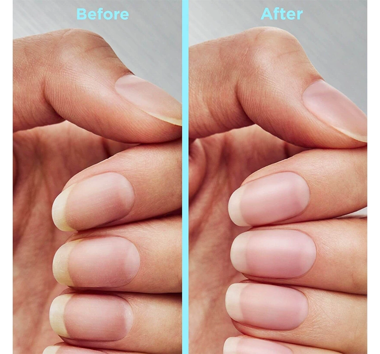 Entfernen Sie den Nagellack und beseitigen Sie alle Verunreinigungen und Fette. Tragen Sie die Kur mit dem Pinsel auf die Nägel auf. Lassen Sie sie trocknen. Regelmäßig anwenden.