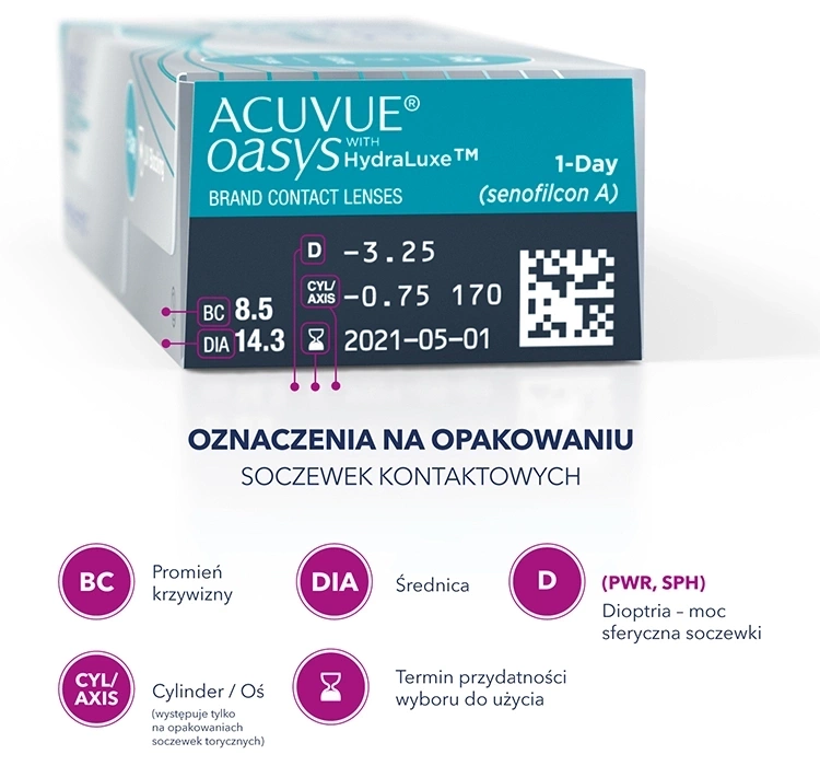 Die Kontaktlinsen Acuvue Oasys 1-Day von Johnson & Johnson bestehen aus Silikon-Hydrogel mit HydraLuxe Technologie, durch die Ihre Augen den ganzen Tag lang frisch bleiben. Perfekt geeignet für empfindliche Linsenträger, Allergiker und für Personen, die einen stressigen Lebensstil führen.