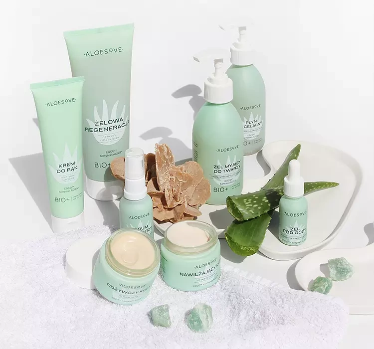 Der Hauptbestandteil der Kosmetika ist organischer Aloe-Vera-Saft. Dieser Inhaltsstoff verbessert deutlich das Aussehen und den Zustand der Haut. Er beruhigt Entzündungen, spendet tiefgehende Feuchtigkeit und beschleunigt die Hauterneuerung. Außerdem wirkt er antibakteriell und entzündungshemmend, reduziert Rötungen und erfrischt und strafft die Haut.