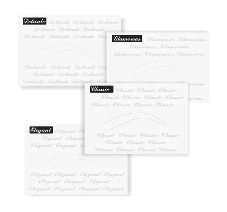 Der Set enthält 4 verschiedene Augenbrauenformen - Wählen Sie die perfekte Schablone, die Ihre natürliche Augenbrauenform entspricht. Delicate, Classic, Elegant und Glamorous eignen sich ideal für jeden Anlass.