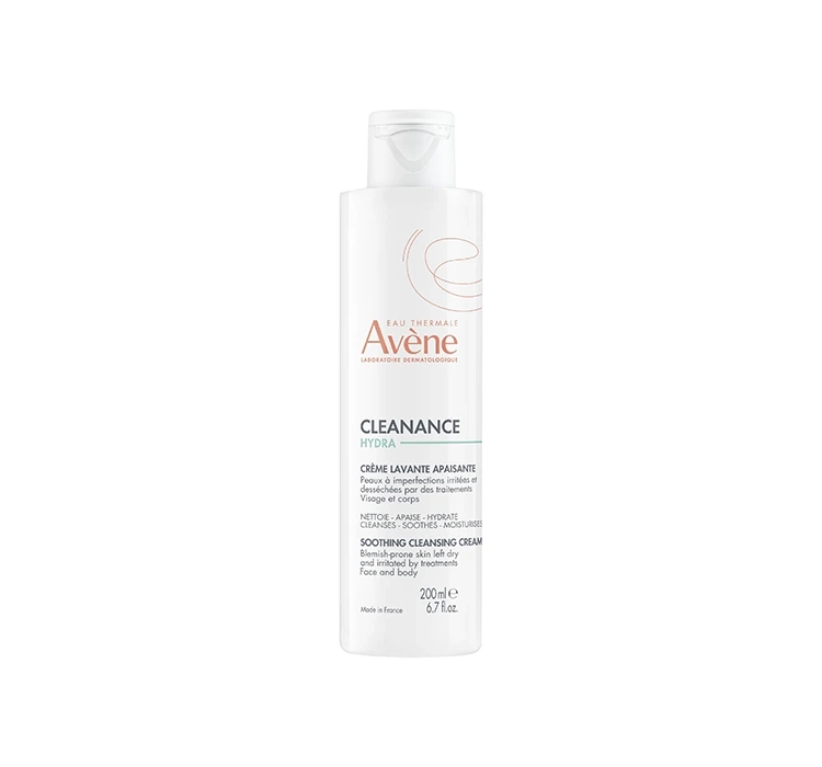 • Die beruhigende Reinigungscreme Eau Thermale Avène Cleanance Hydra reinigt und beruhigt die empfindliche, durch Aknemedikamente ausgetrocknete Haut, stellt den Komfort wieder her und regeneriert den Hydrolipidmantel. Sie spendet Feuchtigkeit und nährt die