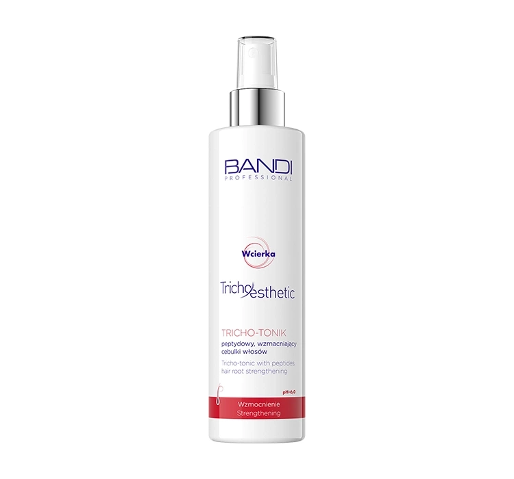 Peptid-Tonikum – Haarserum aus der Serie Bandi Professional Tricho-esthetic verbessert den allgemeinen Zustand der Kopfhaut und des Haares und verleiht ein gesundes, schönes Aussehen. Das Tonikum stärkt effektiv die Haarwurzeln und stimuliert das Haarwachstum. Darüber hinaus verhindert es übermäßigen Haarausfall, Verlust an Dichte sowie Haarbruch.