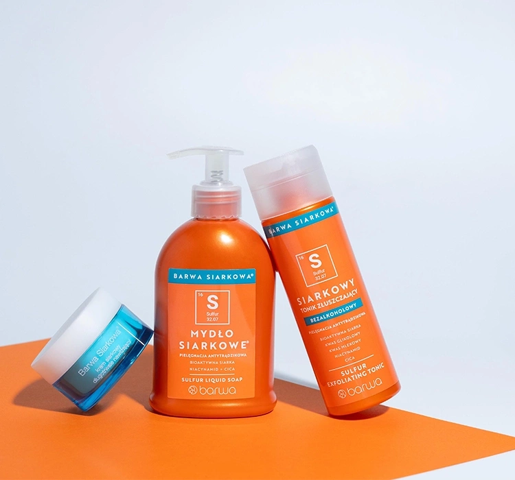 Barwa Schwefel ist eine Kosmetiklinie zur Pflege der fettigen, problematischen Haut mit Akne. Die Formeln enthalten Schwefel, der im Kampf gegen Hautunreinheiten behilflich ist. Schwefel wirkt gegen Akne, begrenzt das Risiko von Pickelentstehung, erfrischt und mattiert den Teint. Die Reihe ist breit und bietet Gels, Flüssigkeiten, Seifen sowie Produkte im Schaum. Jeder findet etwas für sich.