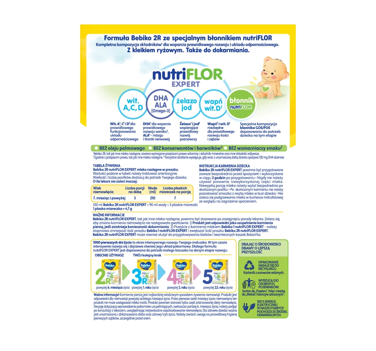 Bebiko NutriFlor Expert 2R ist eine ausgezeichnete Wahl für Eltern, die ihren Kindern eine nahrhafte Mahlzeit in einer entscheidenden Entwicklungsphase bieten möchten. Geeignet für Säuglinge nach dem 6. Monat, unterstützt es die Einführung von Beikost und ergänzt das Stillen bei Bedarf.