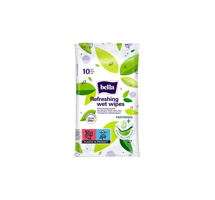 Die universellen Feuchttücher mit grünem Tee von Bella sind ein einzigartiges Produkt, das überall für ein angenehmes Frischegefühl sorgt. Ideal für die tägliche Reinigung von Körper und Händen – jederzeit und überall. Sie sind besonders sanft und verursachen keine Hautreizungen, daher eignen sie sich auch für empfindliche Babyhaut.