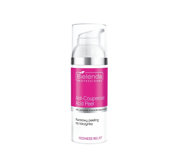Säurepeeling für empfindliche Haut Bielenda Professional Redness Relief ist ein Spezialkosmetikum für empfindliche, zu Rötungen neigende und couperose Haut. Die Formel kombiniert sanfte, aber wirkungsvolle Säuren – Lactobionsäure und Gluconolacton – die Blutgefäße stärken, Rötungen reduzieren und abgestorbene Hautzellen sanft entfernen, wodurch die Haut geglättet wird, ohne sie zu reizen.