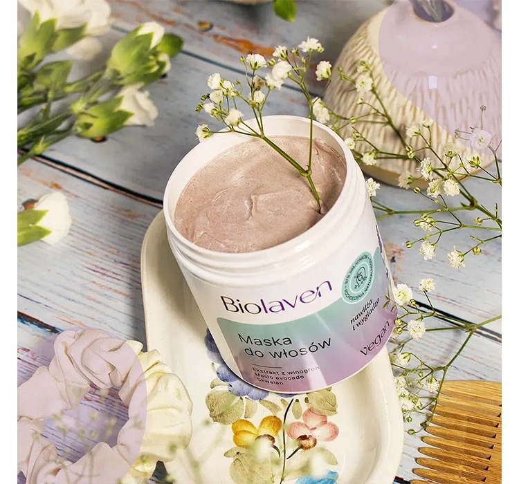 Die feuchtigkeitsspendend-glättende Maske Biolaven Organic eignet sich für Pflege von jedem Haartyp. Sie pflegt dezent die Haare und Kopfhaut, macht sie frisch und strahlend. Unter den aktiven Inhaltsstoffen findet man Weintraubenkernöl und -extrakt, Panthenol-, Lavendelöl, Milchsäure und Avocadobutter. Die Verbindung von den Substanzen bildet einen Feuchtigkeitskomplex, der den Haaren Weichheit und Glätte ohne zusätzliche Belastung und der Kopfhaut eine Ernährung sichert. Die Maske besitzt erfrischende, glättende Eigenschaften.