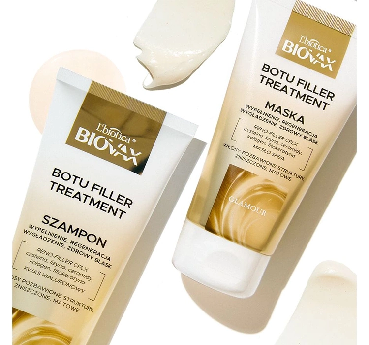 Die Biovax Glamour Botu Filler Treatment Haarpflege-Serie für geschwächtes, dünnes, stumpfes und geschädigtes Haar hat eine fortschrittliche Formel mit auffüllender und glättender Wirkung.