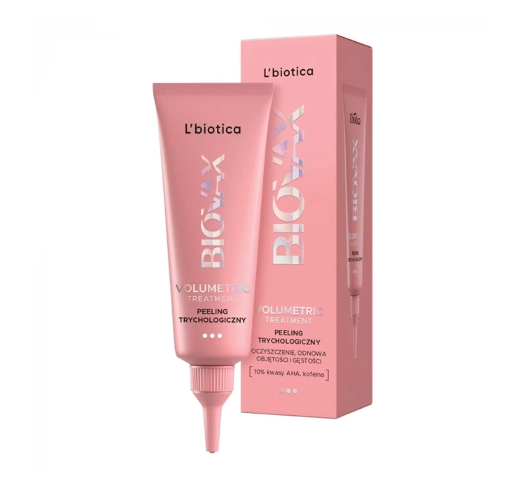 • Das trichologische Peeling reinigt die Kopfhaut, hebt die Haare an der Wurzel an und verbessert deren Zustand. Dank AHA-Säuren, Koffein und Albizia-Rinden-Extrakt schält er die Haut ab, stimuliert die Haarfollikel und stärkt die Strähnen.