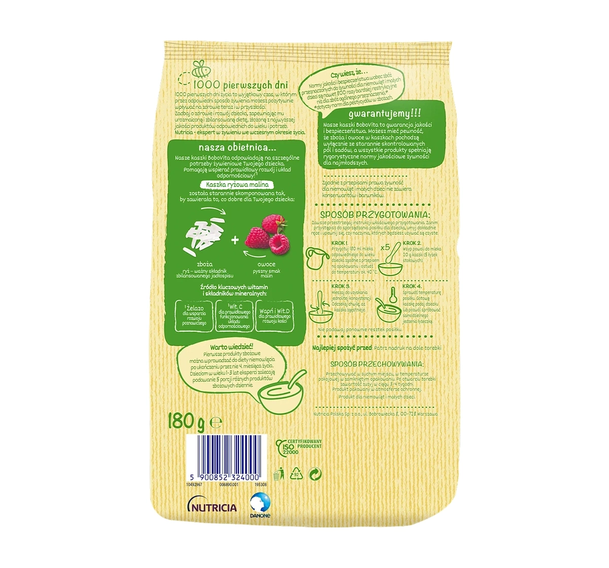 Der Himbeer-Reisbrei von BoboVita enthält keine Kuhmilchproteine, Laktose, Konservierungsstoffe oder Farbstoffe, was ihn zu einer natürlichen und sicheren Wahl für die Kleinsten macht.