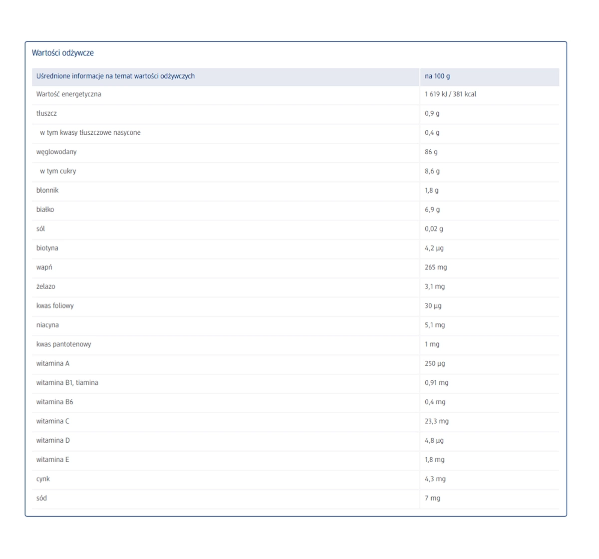 - angereichert mit Eisen, Jod und den Vitaminen C, D und B6