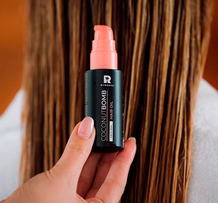 Anwendung des Haaröls ByRokko Coconut Bomb