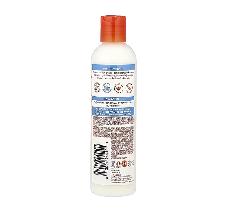 Die Formel von Cantu Weightless 15+ Benefits basiert auf pflanzlichen und biologischen Inhaltsstoffen. Fair-Trade-Blauer-Agavenextrakt sowie Bio-Sheabutter und Kokosöl stärken das Haar, glätten es und schützen vor Schäden. Zusätzlich fördern Grünteeextrakt und Erbsenprotein gesundes Haarwachstum, verbessern die Elastizität und verleihen Volumen. Die aktiven Inhaltsstoffe schützen das Haar vor hohen Temperaturen bis 250℃, helfen, die Haarfarbe zu erhalten, verhindern Spliss und wirken Frizz entgegen.