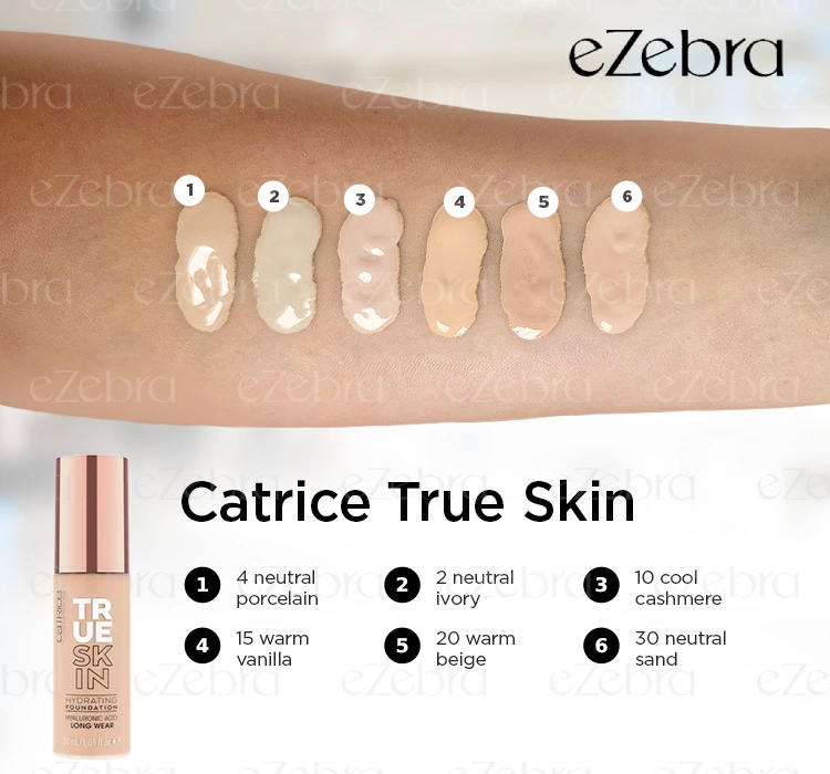 Catrice True Skin ist eine feuchtigkeitsspendende Grundierung mit einer extrem haltbaren Formel. Das Produkt ermöglicht eine mehrschichtige Abdeckung, wodurch der Effekt von mittlerer bis starker Abdeckung abgestuft werden kann. Die Grundierung verleiht ein subtiles mattes Finish.