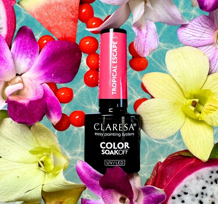 Claresa Tropical Escape ist eine Kollektion von Hybridlacken, inspiriert von tropischen Inseln, saftigen Früchten und exotischen Sonnenuntergängen. Sie umfasst kräftige Neonfarben, romantische Pastelltöne und glitzernde Akzente – und spiegelt die vielen Facetten der Weiblichkeit wider – von energiegeladen bis sinnlich. Die perfekte Wahl für Frauen, die den Sommer, das Reisen und Farben lieben – unabhängig vom Wetter.