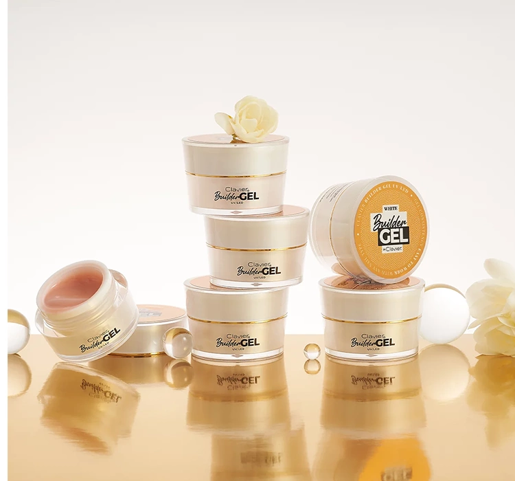Aufbaugel mit mitteldicker Konsistenz Builder Gel der Marke Clavier ermöglicht die freie Gestaltung der Nagelform. Damit können Sie nicht nur die natürliche Nagelplatte modellieren und aufbauen, sondern sie auch verlängern und verstärken.