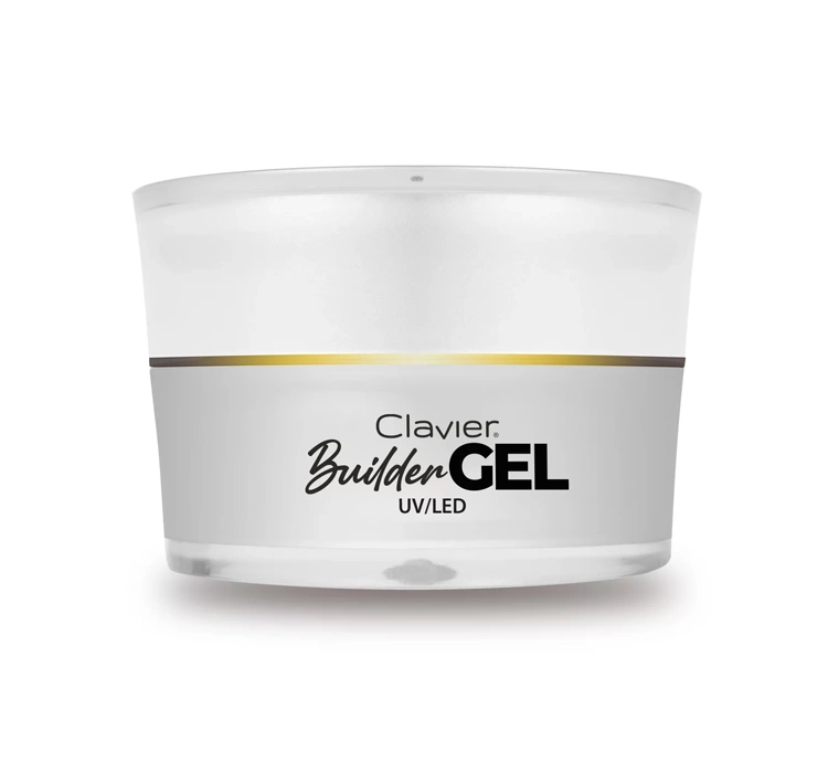 Aufbaugel mit mitteldicker Konsistenz Builder Gel der Marke Clavier ermöglicht die freie Gestaltung der Nagelform. Damit können Sie nicht nur die natürliche Nagelplatte modellieren und aufbauen, sondern sie auch verlängern und verstärken.