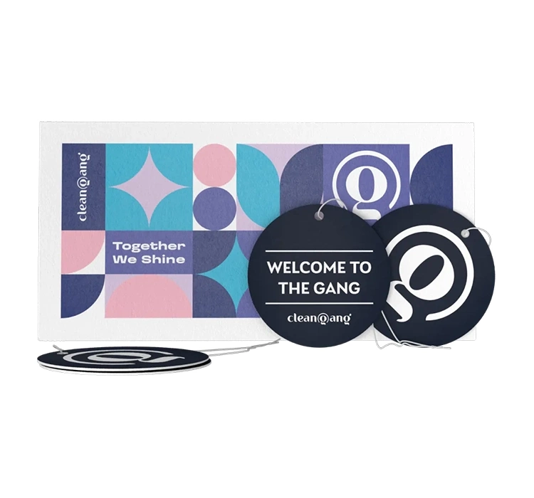 Die Duftanhänger von CleanGang sind die ideale Lösung für alle, die einen angenehmen Duft langfristig in ihrem Raum – sei es Zuhause, im Büro oder im Auto – bewahren möchten. Der Lufterfrischer in Form eines Anhängers besteht aus natürlichem Zellulose-Material, das Gerüche sehr gut absorbiert und diese über viele Wochen hinweg langsam freisetzt.