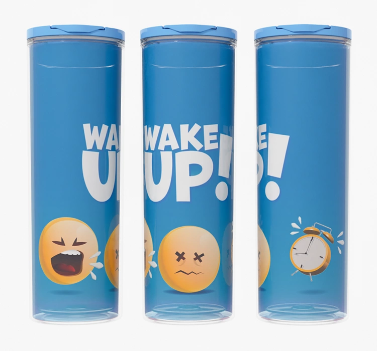 • SELF Dafi 430 ml Thermobecher in Blau mit der Aufschrift „Wake Up!“