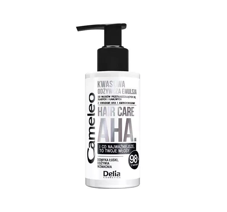 Die Delia Cameleo Hair Care AHA-Serie wurde für die Pflege verschiedener Haartypen entwickelt: fettiges, gefärbtes, durch Friseurbehandlungen geschädigtes, schwaches und brüchiges, dünnes Haar mit gespaltenen Spitzen. Ihre Formeln zeichnen sich durch die Zugabe von AHA-Säuren und Aminosäuren aus, die die Kopfhaut effektiv pflegen und die Schuppenschicht der Haare schließen. Das Haar wird glänzend, lässt sich besser stylen und ist unglaublich weich.