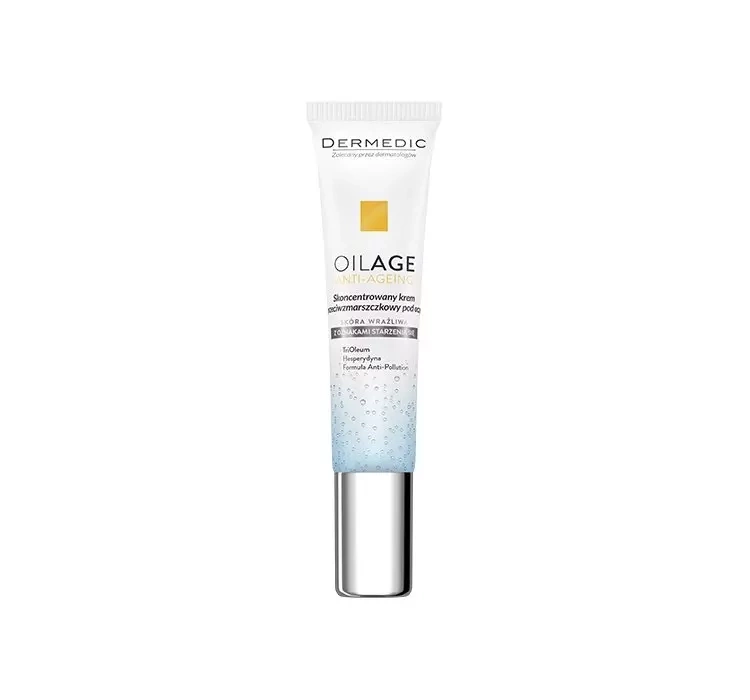 Die konzentrierte Dermedic Oilage Augencreme gegen Falten ist für die Haut mit Alterungszeichen in der Gegend der Augen geeignet. Das Produkt dringt tief in die Haut ein und verleiht ihr eine natürliche Fülle. Das Produkt beinhaltet das TriOleum Komplex, das aus Soja-Isoflavone, Nachtkerzenöl, Avocado und Soja besteht. Dank ihm wird die Haut gründlich regeneriert und verjüngt. Die Augencreme enthält die Anti-Pollution Formel, die die Lipidbarriere ergänzt. Die spezielle Zutat Hesperidin reduziert die Schwellungen und dunkle Augenringe, indem sie den Mikrokreislauf verbessert. Das Produkt wurde klinisch getestet.
