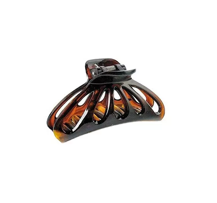 Eine große Klammer zum Befestigen von langen Haaren in einem Pferdeschwanz. Sie erweist sich auch als unverzichtbar, wenn du eine Vielzahl ausgefallener Frisuren kreieren möchtest. Sehr sorgfältig aus gutem Kunststoff. Erhältlich in Bernsteinfarbe.