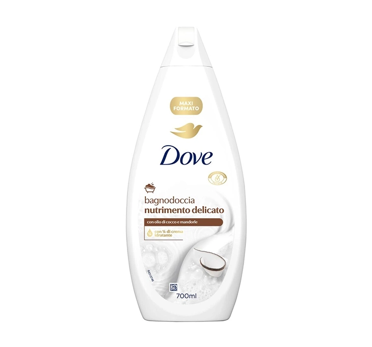 Das cremige Badegel Dove Nutrimento Delicato überzeugt durch seine pflegende Formel mit Kokos- und Mandelöl sowie einem Zusatz von ¼ Feuchtigkeitscreme. Es hat einen sanften, dezenten Duft, der bei jedem gut ankommt.