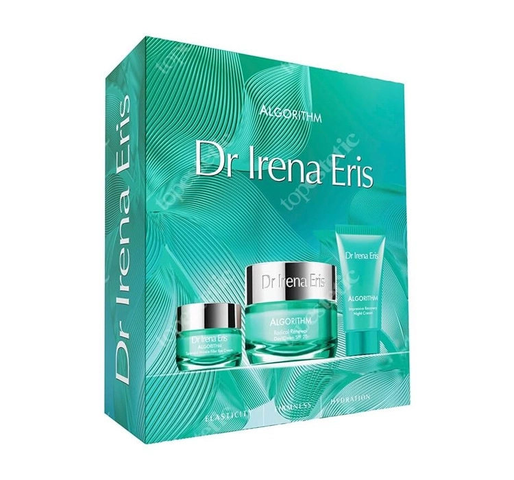 Die Formeln der Linie Dr Irena Eris Algorithm wurden auf Basis fortschrittlicher Wirkstoffe entwickelt, wie biokompatibles Retinol, Peptide und Algenextrakte, die die Kollagen- und Elastinsynthese anregen. Die Nachtcreme regeneriert intensiv und stellt die Glätte der Haut wieder her, die Augencreme füllt feine Linien auf und reduziert Anzeichen von Müdigkeit, während die Tagescreme mit SPF 20+ vor schädlicher UV-Strahlung schützt und die Hautbarriere stärkt.