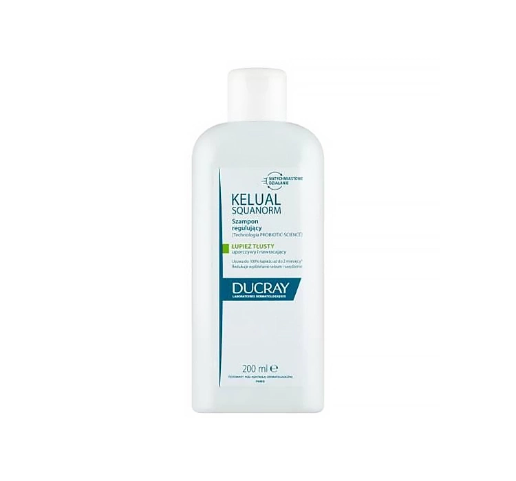 Ducray Kelual Squanorm ist ein spezialisiertes Shampoo zur Regulierung von fettigem Schuppen, das die Kopfhaut intensiv reinigt und wiederkehrende Schuppen effektiv beseitigt. Seine Formel wurde entwickelt, um sofort und langfristig zu wirken – sie reduziert Sebum und Schuppen sichtbar schon ab der ersten Anwendung. Ducray Kelual Squanorm Shampoo bekämpft nicht nur die Symptome, sondern unterstützt auch die Wiederherstellung des mikrobiellen Gleichgewichts der Kopfhaut und imitiert die Wirkung von Probiotika.