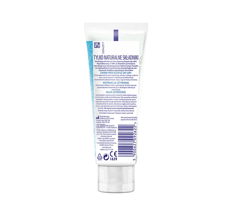 Intimgels sind mit dem CE-Zeichen versehen, das die Einhaltung der europäischen Vorschriften für Medizinprodukte anzeigt. Die Nummer der benannten Stelle für dieses Produkt ist 1639. Alle Informationen auf der Verpackung und die Gebrauchsanweisung sind in polnischer Sprache. Das Produkt erfüllt die Anforderungen der Konformitätserklärung der Europäischen Union. DUREZ-Produkte werden sorgfältig geprüft und nach den höchsten Standards hergestellt.
