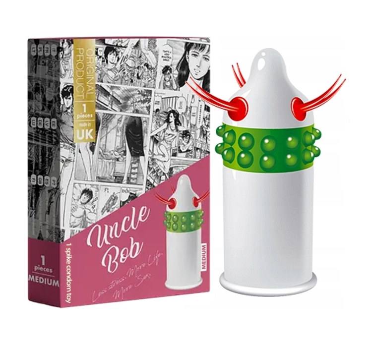 entsprechend den Angaben auf der VerpackungDie stimulierenden Uncle Bob Kondome mit Noppen sind einfach in der Anwendung und leicht anzulegen. Sie stellen eine ideale Wahl für Personen dar, die ihr Sexualleben mit neuen Möglichkeiten bereichern möchten. Entwickelt für Komfort und Genuss, bieten die Uncle Bob Kondome nicht nur Sicherheit, sondern auch intensive erotische Empfindungen. Die sich verjüngende Form des Kondoms umschließt den Penis auf anregende Weise, und die Noppen an der Spitze des Kondoms bieten der Frau zusätzliche sinnliche Erfahrungen.