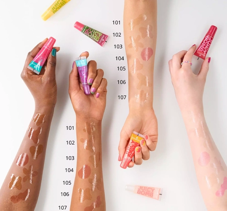 Essence Juicy Bomb Lipgloss verleiht den Lippen einen schönen Glanz und einen Hauch von Farbe. Es wurde für Personen entwickelt, die ein dezentes und natürliches Lippenfinish bevorzugen, im Vergleich zu intensiverem Deckvermögen von Lippenstiften. Dank des Glanzes erzeugt es die Illusion vollerer Lippen, indem es Licht reflektiert und Volumen verleiht.