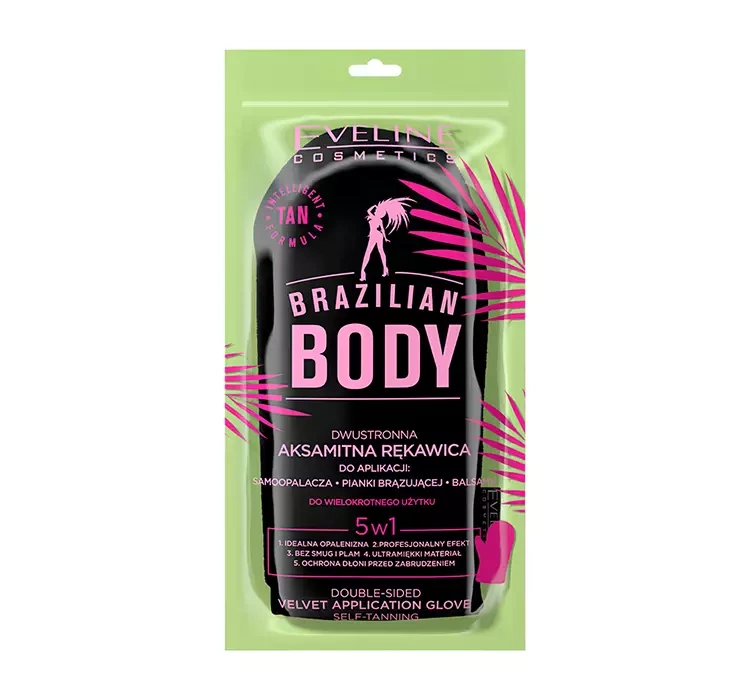 Der zweiseitige Handschuh zur Selbstbräunerapplikation von der Linie Eveline Cosmetics Brazilian Body ist ein speziell entwickeltes Produkt für die Anwendung verschiedener Arten von Selbstbräunungsprodukten. Es erleichtert wesentlich das gleichmäßige Auftragen von Bräunungskosmetika wie Lotionen, Gelen, Schäumen, Mousses oder Selbstbräunern. Es besteht aus feiner Mikrofaser, die die Haut nicht reizt und sich sehr angenehm anfühlt. Die Innenseite des Handschuhs ist aus wasserdichtem Material gefertigt, das die Hand effektiv vor Schmutz schützt. Es hinterlässt eine fantastische Farbe, ohne Flecken, Streifen oder Unebenheiten!
