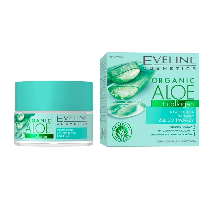 EVELINE ORGANIC ALOE + COLLAGEN FEUCHTIGKEITSSPENDENDES UND MATTIERENDES GESICHTSGEL 50ML