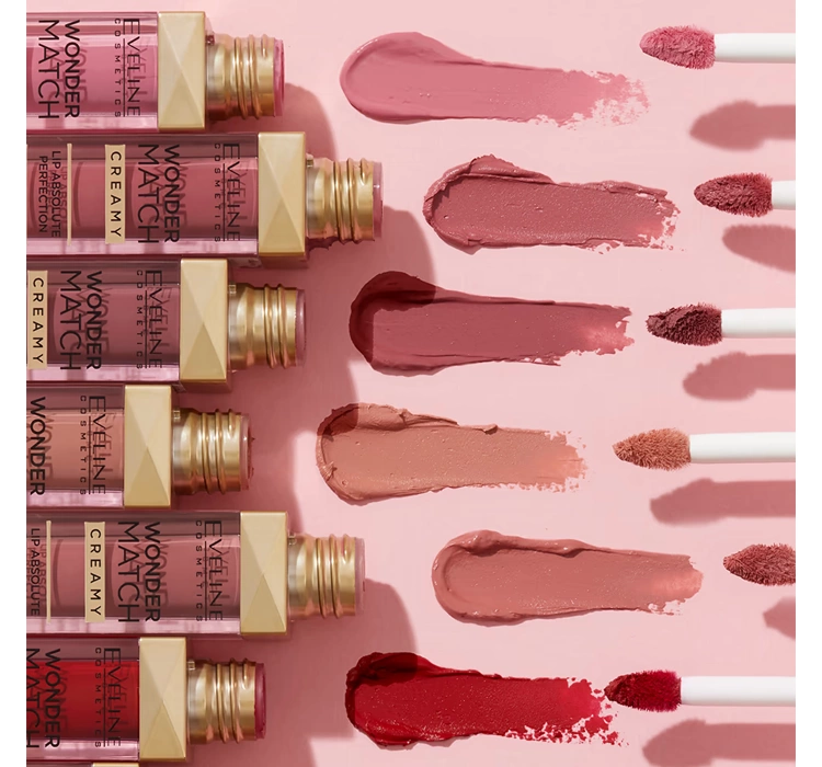 Die kultige Serie von Eveline Wonder Match hat nun matte Lippenstifte mit einer phänomenalen Farbpalette eingeführt, die feuchtigkeitsspendend wirken und gleichzeitig eine satte Farbe und angenehmes Tragegefühl garantieren. Was sie auszeichnet, ist auch ihre Haltbarkeit. Dank der speziellen langanhaltenden und kussechten Formel verblasst der Lippenstift nicht und verblasst nicht über viele Stunden hinweg.