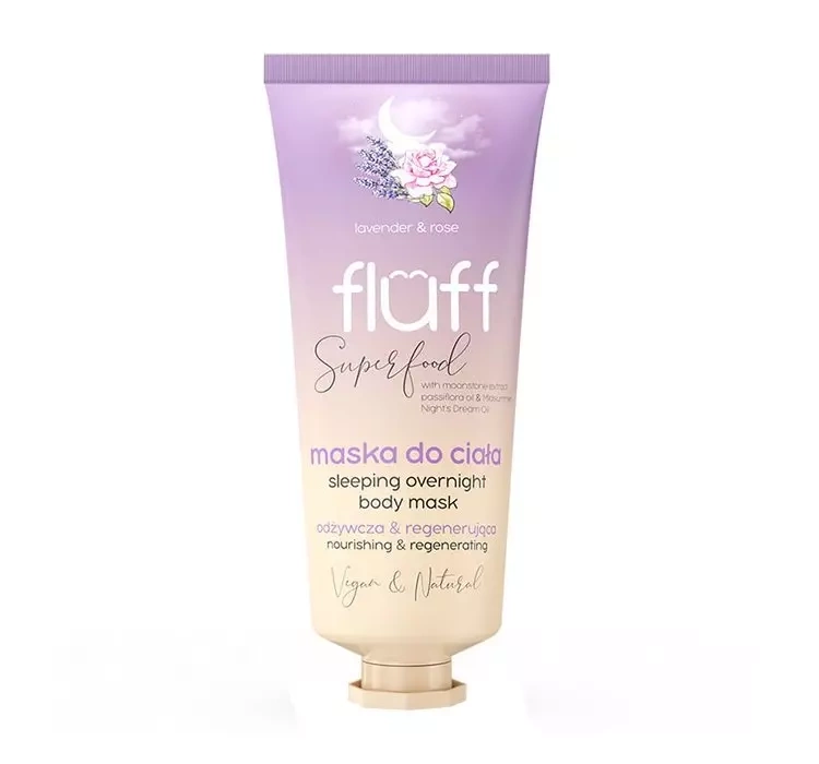 Fluff Superfood ist Körpermaske für Nacht, die die Haut regeneriert, mit Feuchtigkeit versorgt und entspannt. Das Kosmetikum sichert Entspannung nach lagem Tag.