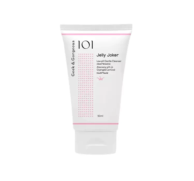 Das Jelly Joker Geek & Gorgeous 101 sanfte Gesichtswaschgel kann täglich als grundlegende Hautreinigung verwendet werden. Es kann alle Verunreinigungen und Make-up-Produkte (nur wasserlösliche) entfernen. Seine Konsistenz ist dick, gelartig und nicht schäumend. Sie enthält eine durchdachte Wirkstoffkomposition, wie eine sehr zarte Waschgrundlage, ein Trio feuchtigkeitsspendender Substanzen auf Zuckerbasis und beruhigendes Panthenol mit Allantoin. Das Jelly Joker Geek & Gorgeous Gesichtsgel brennt nicht in den Augen und hat einen niedrigen und hautfreundlichen pH-Wert von 5-5,4.