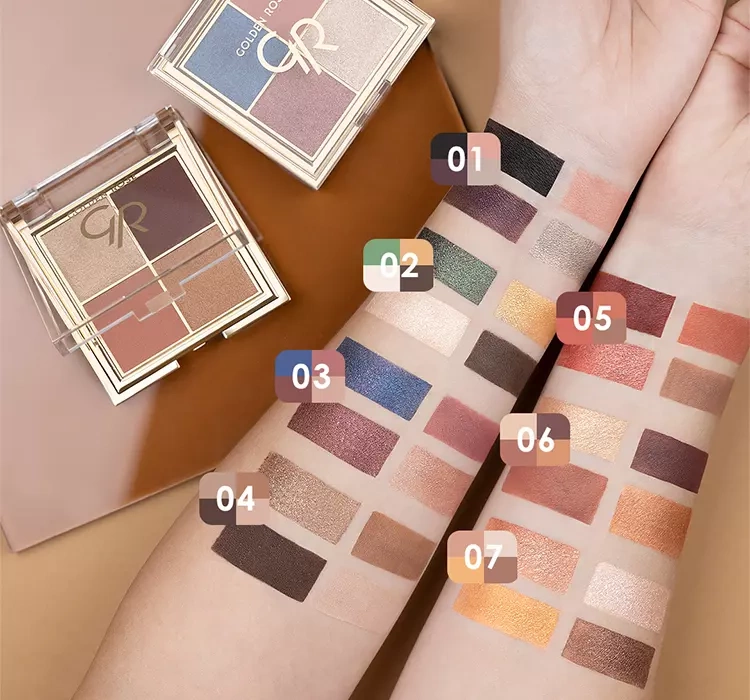 Golden Rose Quattro ist eine einzigartige Serie von Lidschattenpaletten, mit denen du jedes Mal ein außergewöhnliches Make-up kreieren kannst. Sie enthalten 4 perfekt aufeinander abgestimmte Nuancen mit unterschiedlichen Ausführungen, die sich in jeder Situation hervorragend bewähren. Im Angebot gibt es eine reiche Auswahl an Paletten in verschiedenen Farbvarianten, sodass du diejenige auswählen kannst, die deinen individuellen Bedürfnissen, Vorlieben oder deiner Stimmung entspricht.