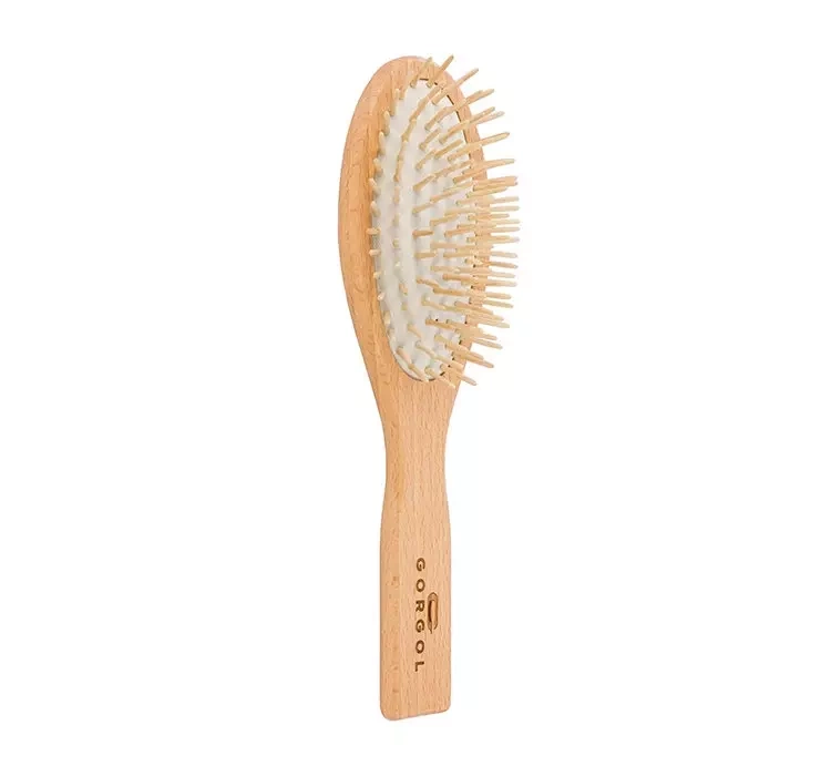 Die Gorgol Haarbürste wurde mit einem pneumatischen Kissen aus flexiblem und extrem strapazierfähigem Gummi ausgestattet. Das Kissen hat ein Loch, das eine ordnungsgemäße Luftbewegung und einen ordnungsgemäßen Betrieb der Bürste gewährleistet. Darüber hinaus verwendet die Bürste hochwertige Holznadeln. Sie sind äußerst sanft zur Kopfhaut und sorgen für eine angenehme Kopfhautmassage. Das Produkt ist hochtemperaturbeständig und kann in Verbindung mit einem Trockner verwendet werden.