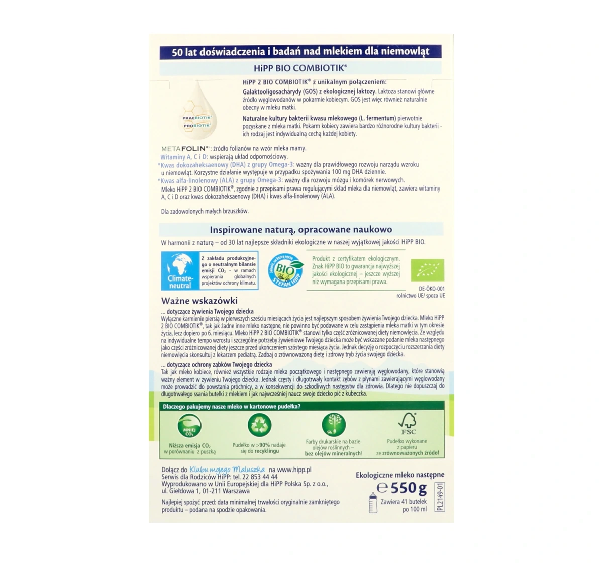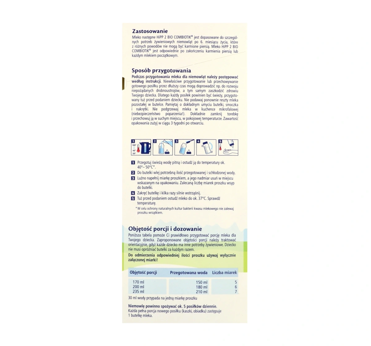 HiPP 2 BIO COMBIOTIK® sollte nur als Teil einer ausgewogenen Ernährung für Kinder nach dem 6. Lebensmonat verwendet werden. Bei einer früheren Einführung konsultieren Sie bitte einen Kinderarzt.