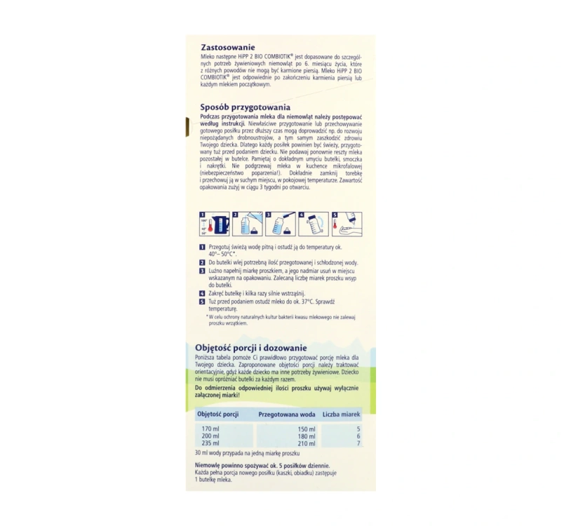 • HiPP 2 BIO COMBIOTIK® sollte nur als Teil einer ausgewogenen Ernährung für Kinder nach dem 6. Lebensmonat verwendet werden. Bei einer früheren Einführung konsultieren Sie bitte einen Kinderarzt.