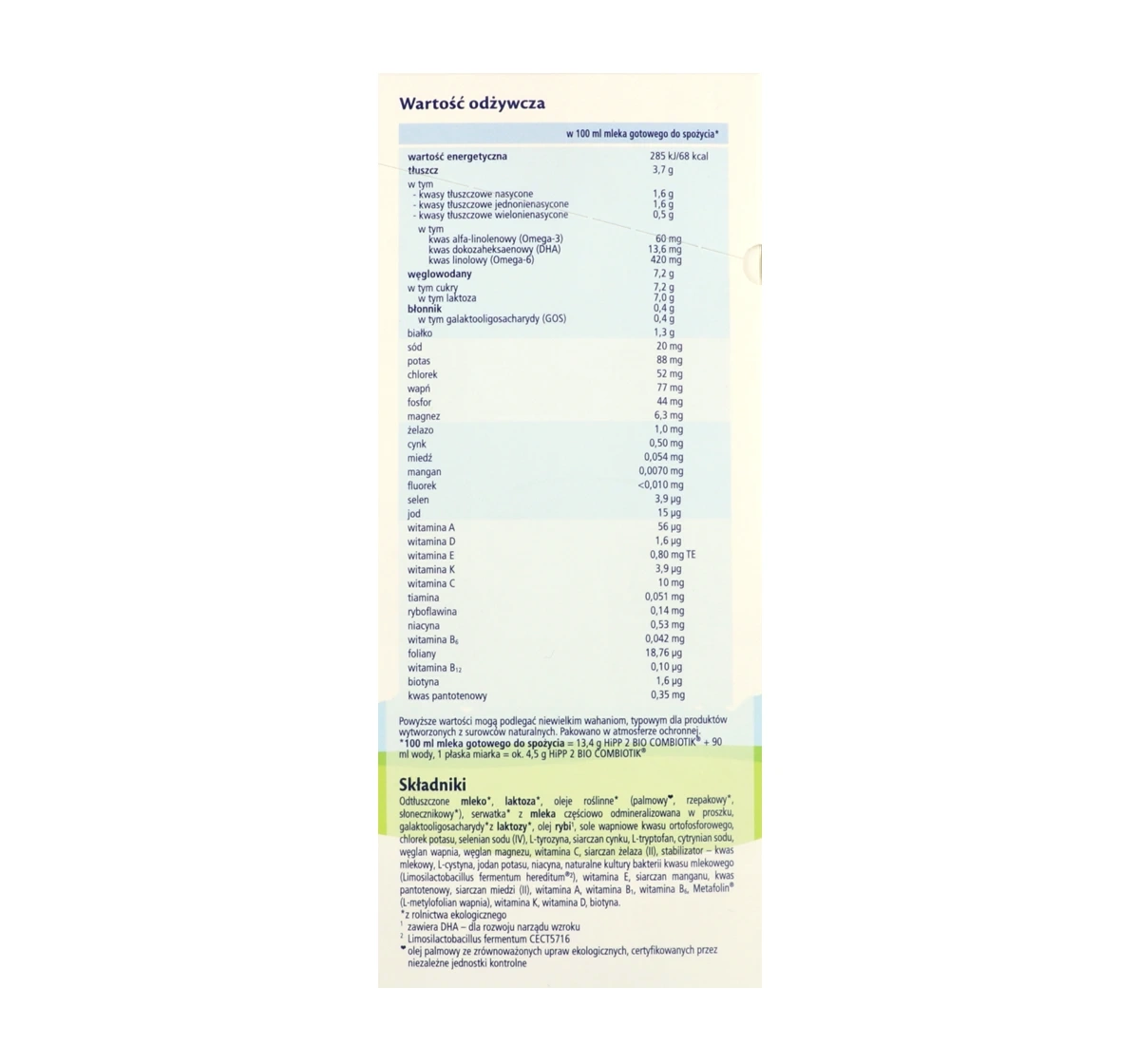 Stillen ist in den ersten sechs Lebensmonaten am vorteilhaftesten für das Baby. HiPP 2 Bio Combiotik® sollte in dieser Zeit nicht als Ersatz für die Muttermilch verwendet werden. Führen Sie es nach dem 6. Lebensmonat als Teil einer abwechslungsreichen Ernährung ein. Bei Bedarf eines früheren Einsatzes von Folgemilch konsultieren Sie bitte einen Kinderarzt und passen Sie die Ernährung an die individuellen Bedürfnisse Ihres Kindes an.
