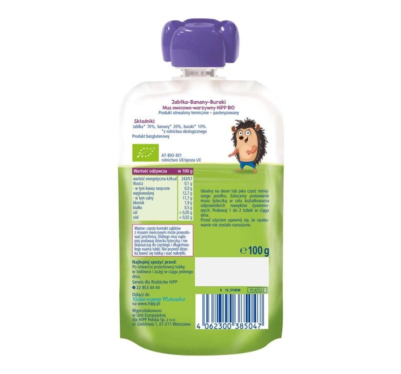 Frucht-Gemüse-Püree im Quetschbeutel nach dem 5. Monat HiPP Bio Äpfel Bananen Rote Bete