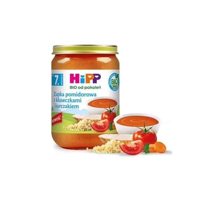HiPP Bio Menü im Gläschen nach dem 7. Monat – Tomatensuppe mit Nudeln und Hähnchen 190g