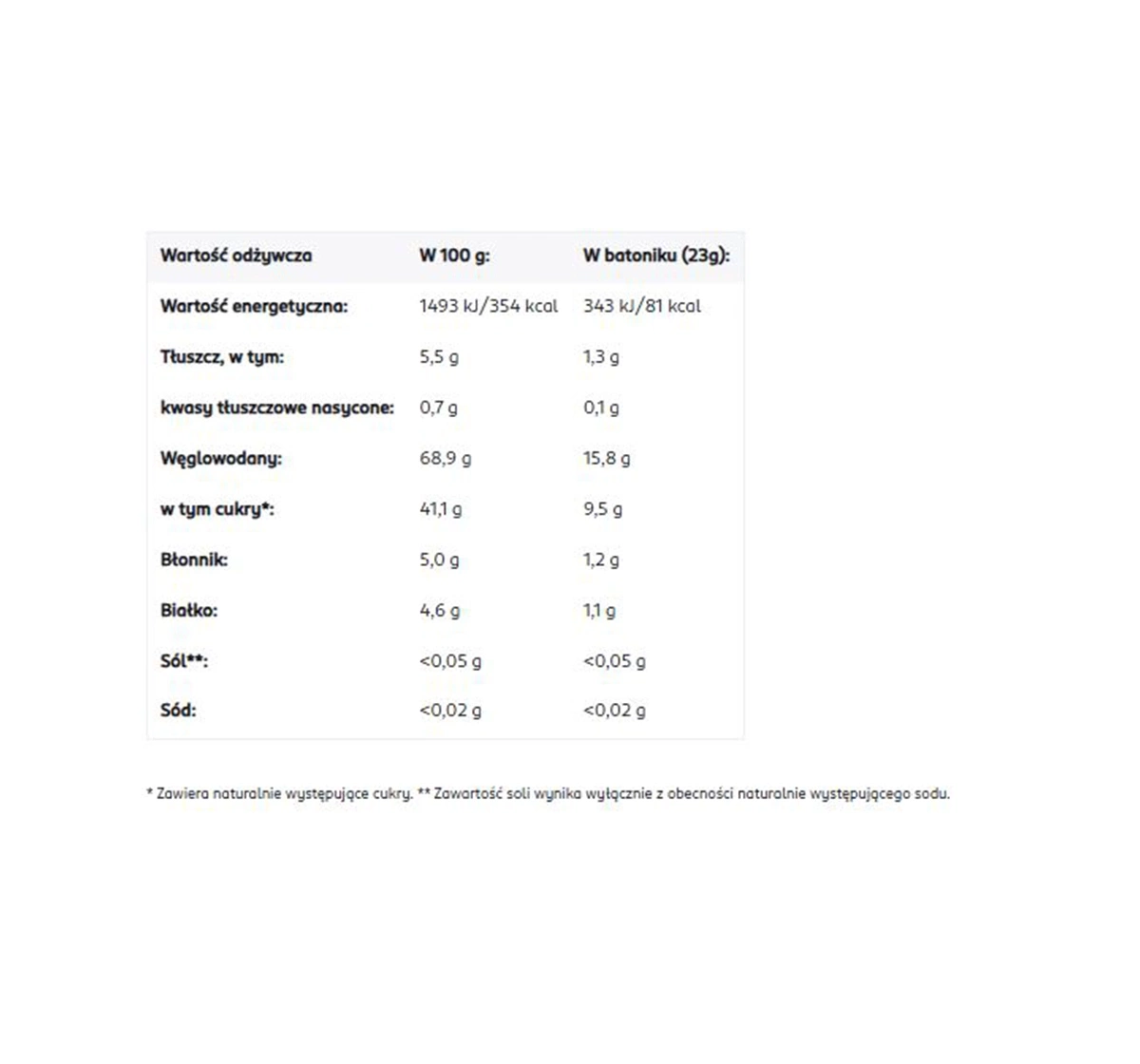 Zutaten: Apfelsaftkonzentrat* 29 %, Bananenflocken* 29 %, Vollkorn-Hafermehl* 15 %, Vollkorn-Weizenmehl*, Sonnenblumenöl*, Weizenmehl*, Aroniasaftkonzentrat*, Kartoffelstärke*, Himbeersaftkonzentrat* 1,5 %, Johannisbeersaftkonzentrat* 1,5 %, Karottensaftkonzentrat*