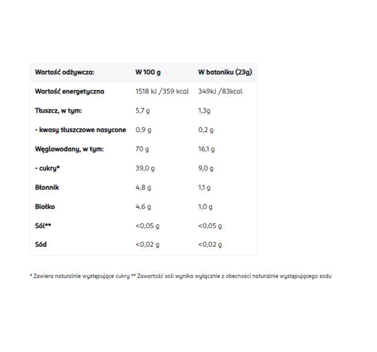 Zutaten / Ingredients: Bananenflocken* 29 %, Apfelsaftkonzentrat* 22 %, Vollkorn-Hafermehl* 15 %, Vollkorn-Weizenmehl*, Traubensaftkonzentrat*, Sonnenblumenöl*, Weizenmehl*, Kartoffelstärke*, Karottensaftkonzentrat*