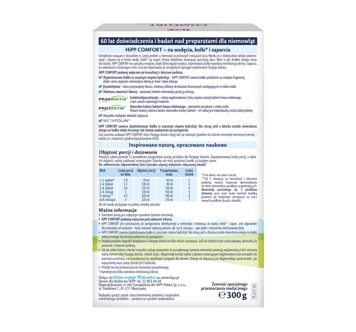 • HiPP Comfort sollte nur unter ärztlicher Aufsicht verwendet werden.