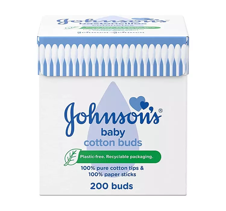 Johnson's Stäbchen enthalten kein Plastik, und die Verpackung besteht aus vollständig recycelbaren Materialien. Die Stäbchenköpfe bestehen aus 100% Baumwolle.