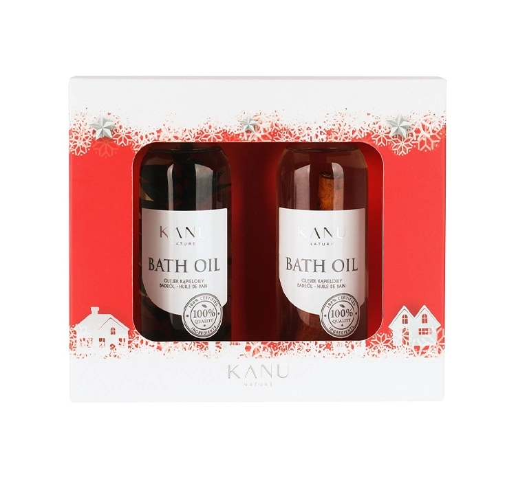 Das Kanu Nature Merry Christmas Badeölset ist eine einzigartige Möglichkeit, ein Home Spa in Ihrem eigenen Badezimmer zu schaffen. Die Öle bestehen zu 98% aus natürlichen Inhaltsstoffen und sind somit nicht nur pflegend, sondern auch haut- und umweltfreundlich. Die Öle von Kanu Nature sind vegan und spenden der Haut tiefenwirksame Feuchtigkeit, nähren sie und regenerieren sie, so dass sie die Lotion nach dem Bad ersetzen können.