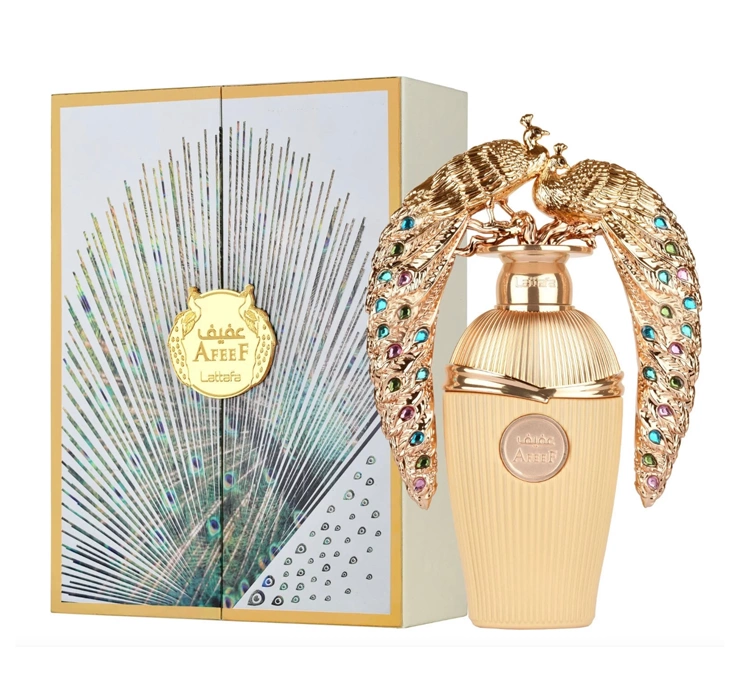 Das Eau de Parfum für Frauen und Männer Lattafa Afeef zieht durch seine Komplexität und Harmonie die Aufmerksamkeit auf sich. Der Flakon des Parfums ist ein außergewöhnliches Beispiel für Eleganz und Luxus, das die tiefere Bedeutung des Pfauensymbols widerspiegelt.